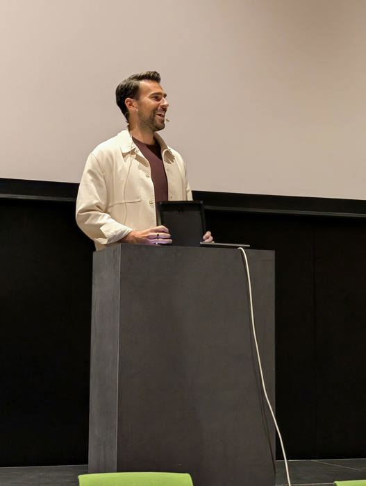Dirigent Kim Wigaard var til stede på landsmøtet for å motta Marie-prisen på vegne av